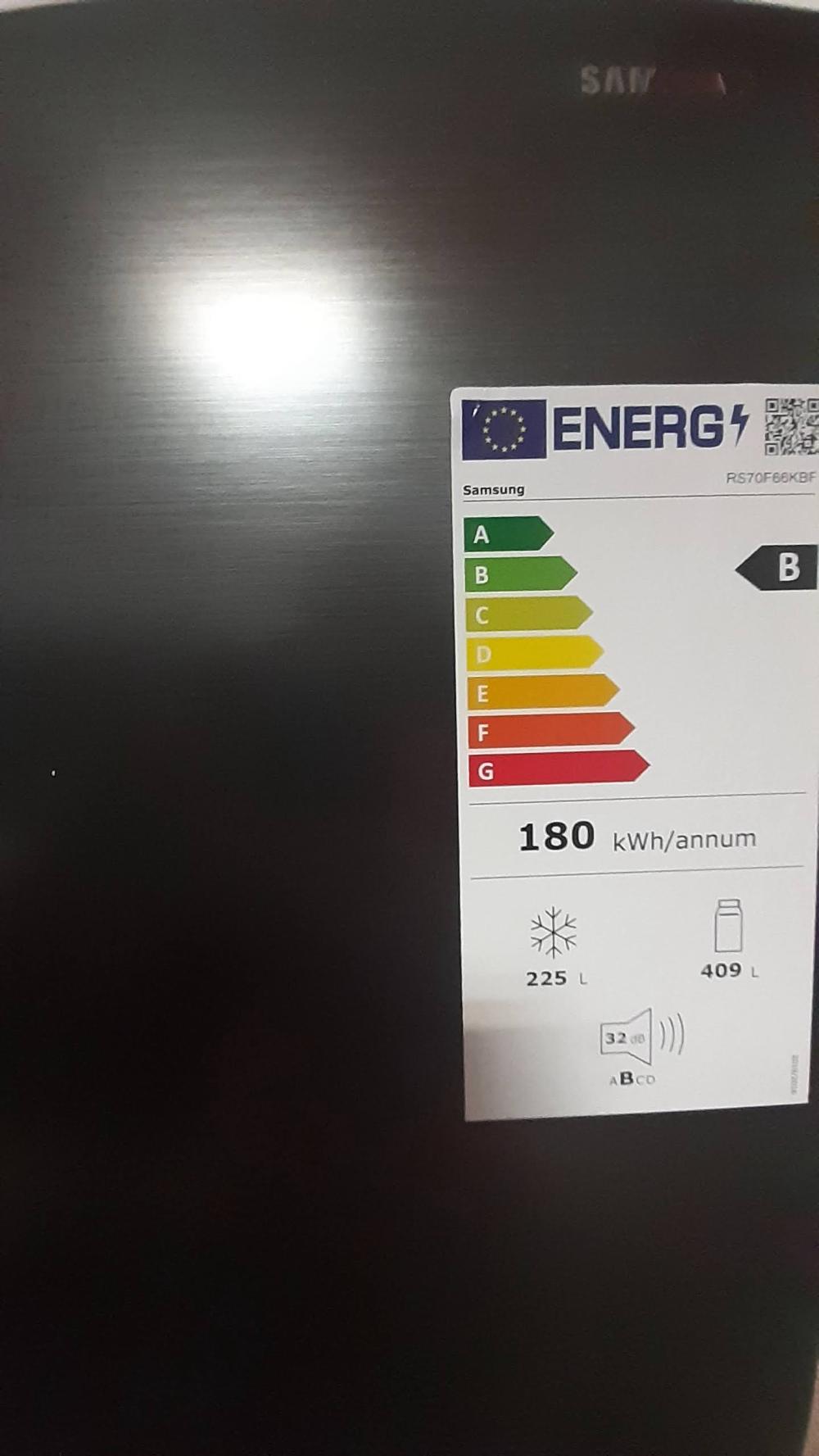 A Samsung RS70F66KBFEF készüléket energiatakarékos és erőforrás-kímélő hűtés jellemzi. A készülék a második legjobb, B energiahatékonysági osztályba tartozik . A gyártó szerint az átlagos energiafogyasztása évi 180 kWh . Ez alacsonyan tartja az üzemeltetési költségeket a hűtőszekrény megvásárlása után.